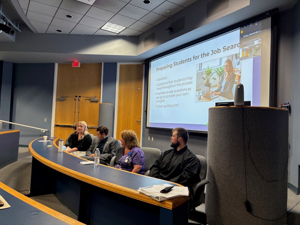 RISE participants discussed how to assist students with the job search. Panelists included Tamara Holler, WVU Medicine; Tammy Feiock, Williams Lea; Jenna Helms, Project BEST intern; Michael Borsuk, Ohio County intern; and Hayden Derrow, recent WLU graduate.